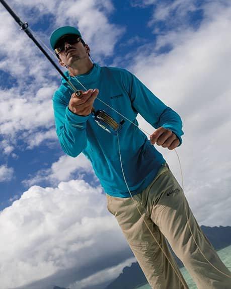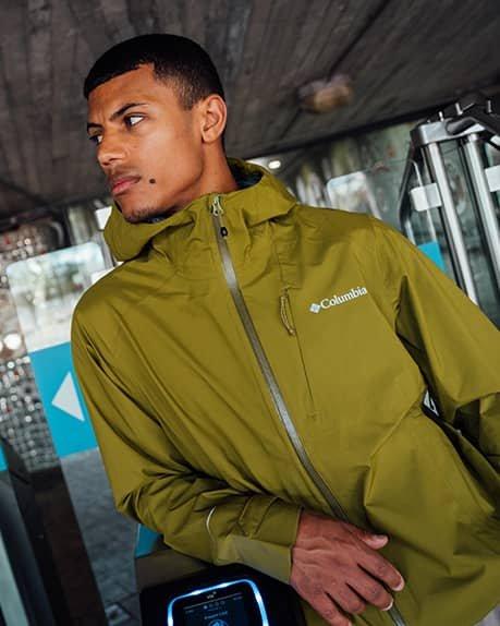 A man hiking in Columbia clothes and equipments Hiking collection
